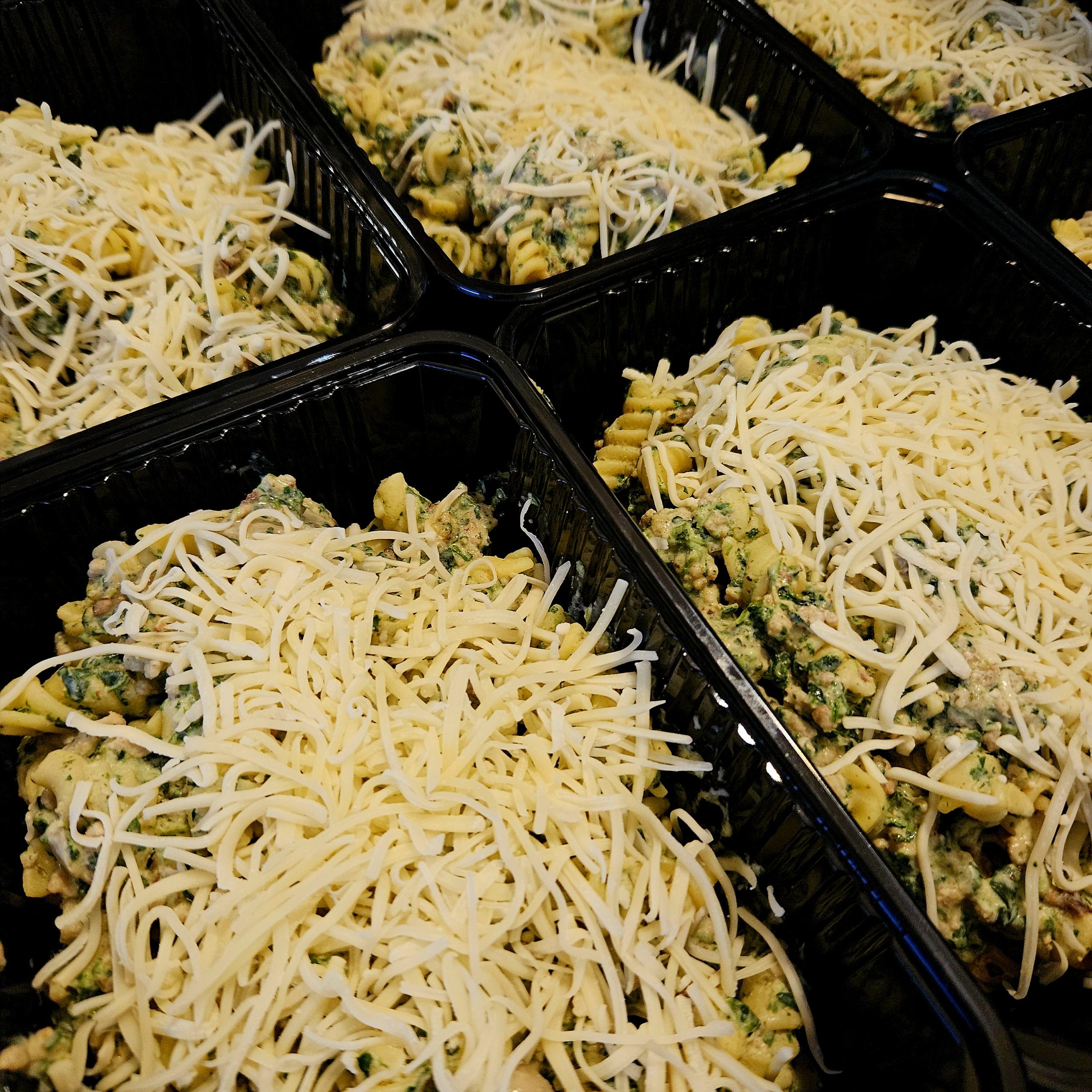 Gouden combo van pasta en spinazie. Afgewerkt met veel gehakt, champignons en kruidenkaassaus.
